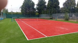 Trasformazione di 2 campo da tennis in resina in 2 nuovissimi campi di nuova generazione “Red Plus”