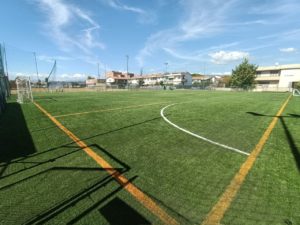 Riqualificazione di un vecchio campo polivalente, con sistemazione della recinzione perimetrale di altezza 6 m. Fuori terra; sul campo è stata fornitura e posata un